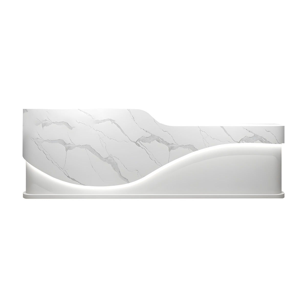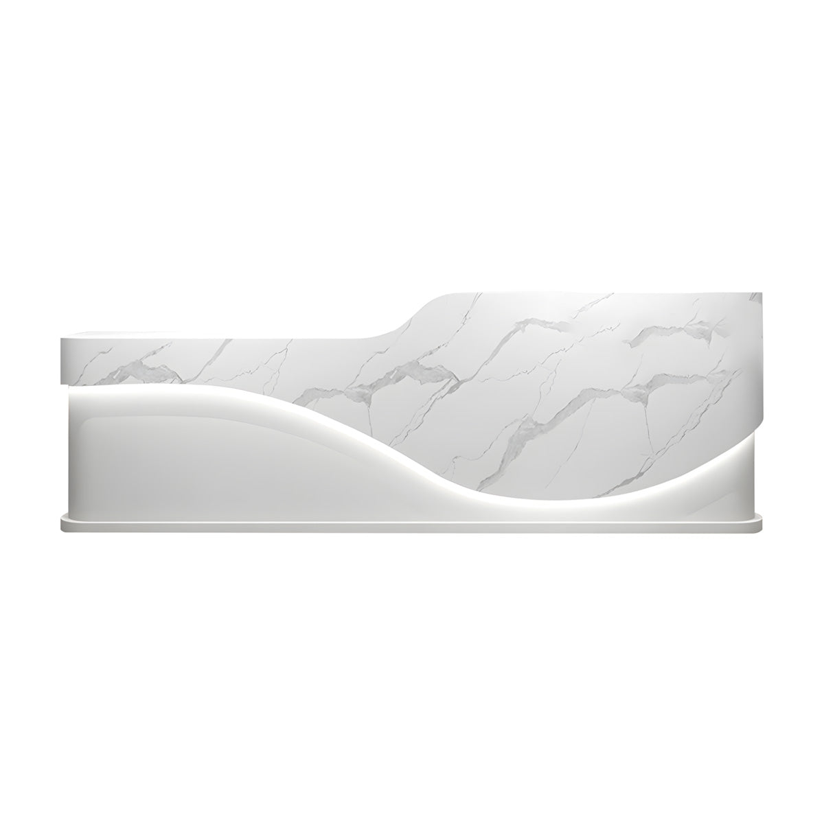 Crafted from premium eco-friendly boards, this desk offers durability and style. Dual-tiered surfaces provide an organized workspace, while ample storage keeps essentials neatly tucked. Integrated LED ambient lighting enhances atmosphere, creating a welcoming and professional environment for any reception or lobby area.
