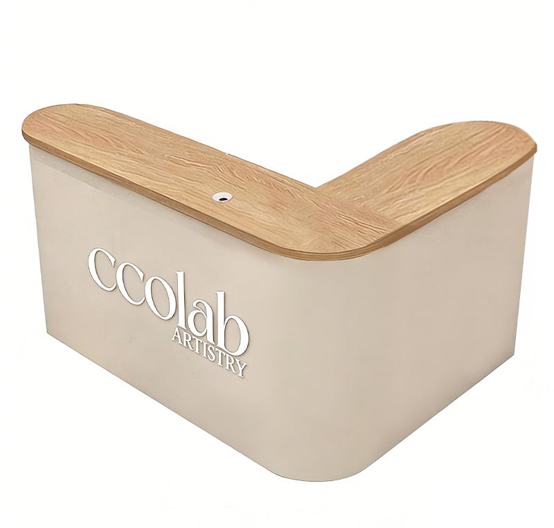 Display Corner L-Shaped Reception Desk with Cable Management and Storage for Salons and Clothing Stores JDT-1063