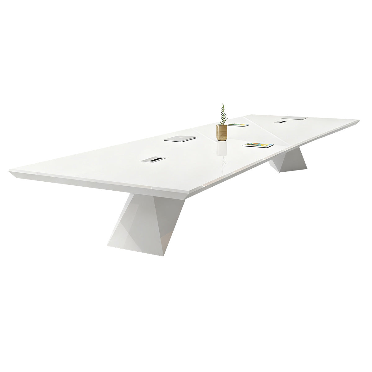 Crafted from elegant white lacquer, the conference table features a durable high-density MDF construction with a smooth piano finish. The spacious tabletop provides a professional setting for meetings and collaborative office spaces, combining style with practicality.