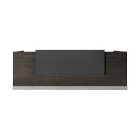The front desk combines a rich dark wood finish with an embedded one-piece black center panel, creating a clean and understated visual contrast. This minimalist design delivers a sharp, professional corporate image while discreetly concealing desktop clutter and computer screens for a more polished reception area.