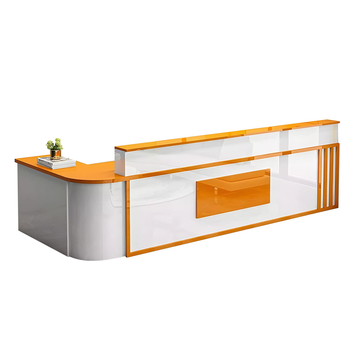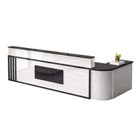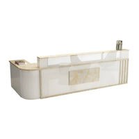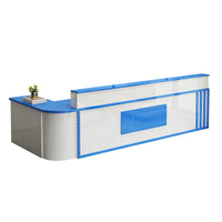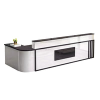This sleek, modern reception counter is perfect for salons, small shops, or boutique cafes. Featuring a marble-style glossy finish, rounded tabletop corners, and integrated ambient LED lighting, it combines style with functionality. The double-tier surface, cable management holes, and ample storage space keep your workspace organized, while durable, eco-friendly panels and a sturdy base ensure long-lasting use. Available in multiple colors and sizes to suit your space.