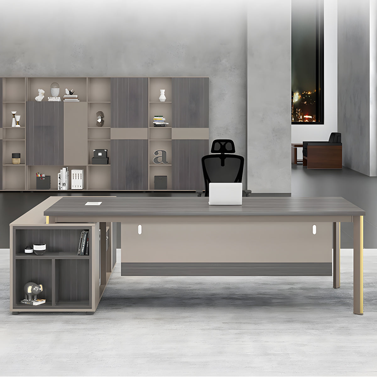 This premium walnut executive desk is perfect for managers, supervisors, or modern office spaces. Made with safe, paint-free boards, it features a spacious open desktop with natural walnut grain and a flip-top cable management box. Includes a digital lock drawer, multi-functional side cabinet with ventilation, and matching chair and filing cabinet. Side cabinet orientation and multiple sizes are available, ideal for offices, home workspace, or professional meeting areas.
