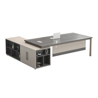 The large-capacity side cabinet stores various office items, accommodates a computer tower, and keeps belongings organized. It includes a digital combination lock drawer to protect privacy.