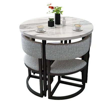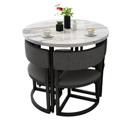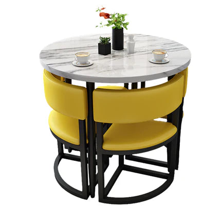 The table and chairs are designed for easy storage; when not in use, the chairs can be tucked under the table, saving space and keeping the area organized.