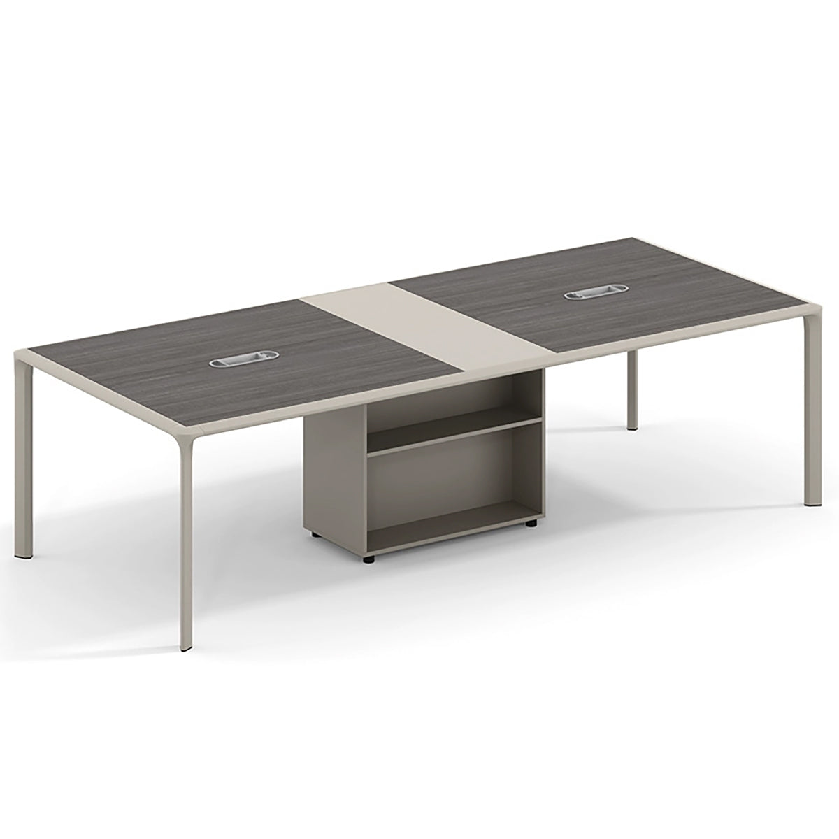 A built-in cabinet in the center of the table adds both storage and support. Makes efficient use of the space under the table, ideal for storing documents, office supplies, or miscellaneous items, keeping the workspace tidy and visually appealing.