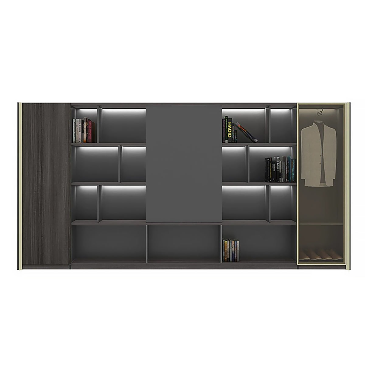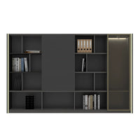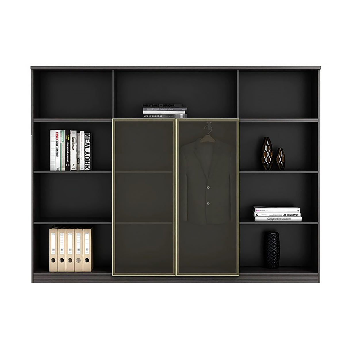 Multi-layer fixed cabinets allow organized storage, with drawers featuring a code lock. Single-door compartments can hold a water dispenser, offering spacious and practical storage.