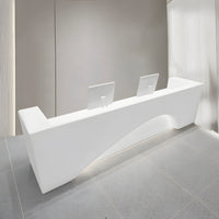This modern curved reception desk is ideal for beauty salons, retail shops, offices, and consulting spaces. Made from eco-friendly board with a clear lacquer finish, it’s durable, smooth, and easy to maintain. The elegant curve adds a professional touch, while the spacious desktop and large storage keep everything organized. Lockable drawers with soft-close rails provide secure, quiet use. Available in multiple colors and sizes to fit your space.