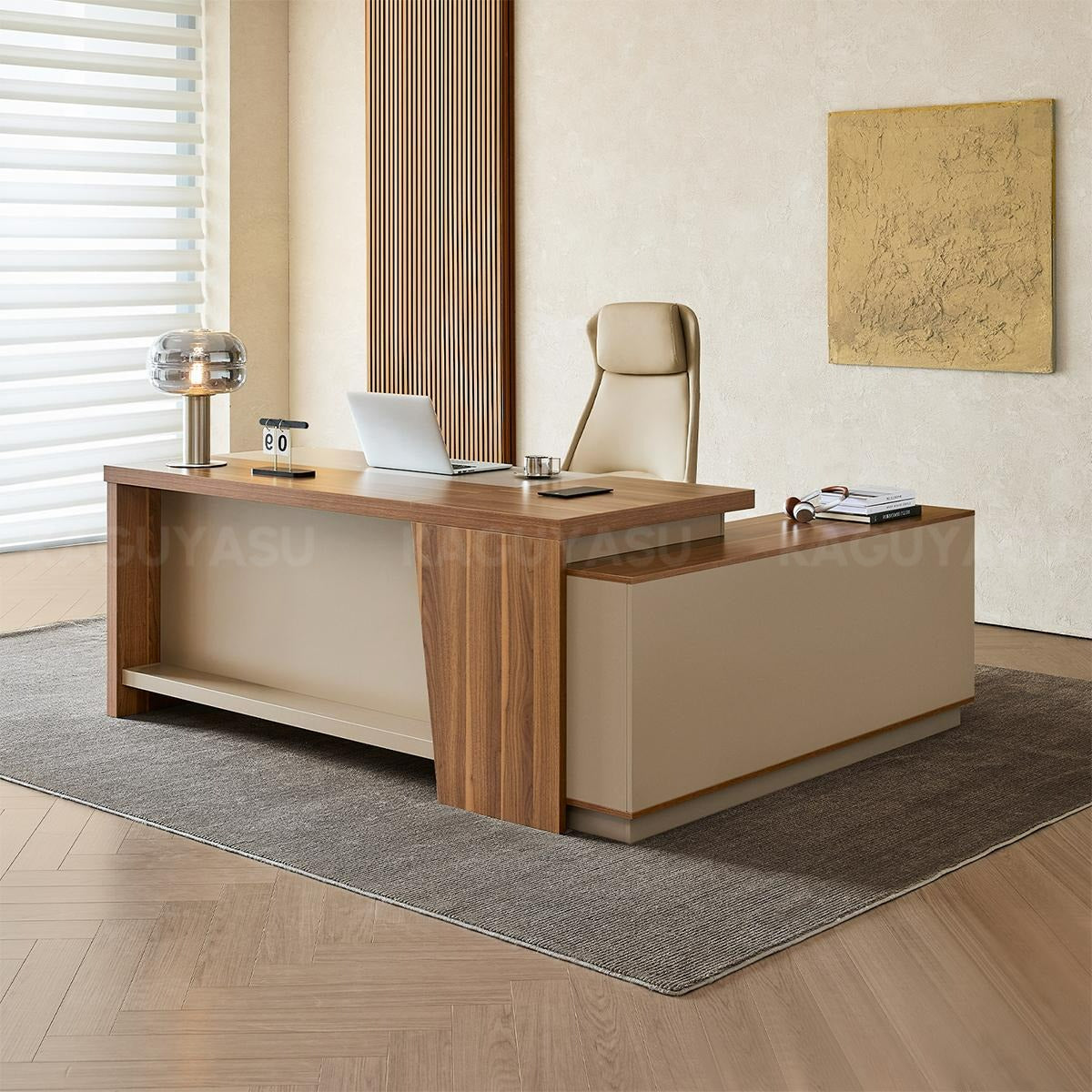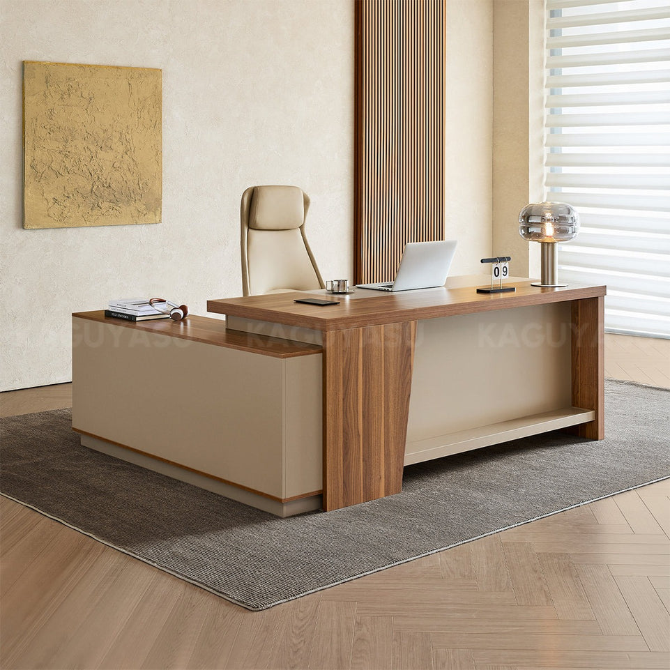 Elegant and Minimalist L-Shaped Executive Desk with Thick Desktop and Spacious Side Cabinet LBZ-2142(In Stock)