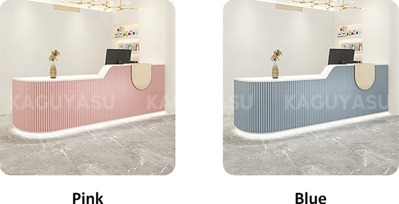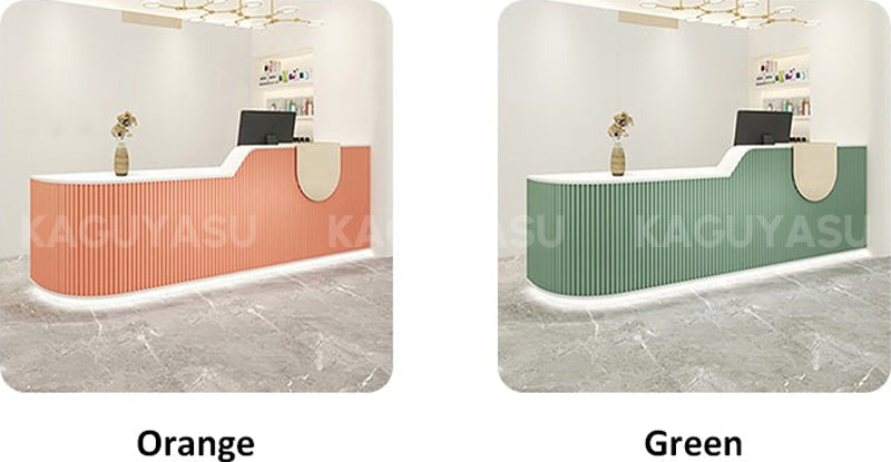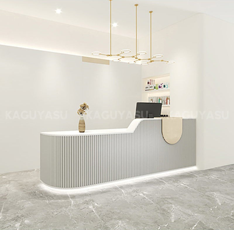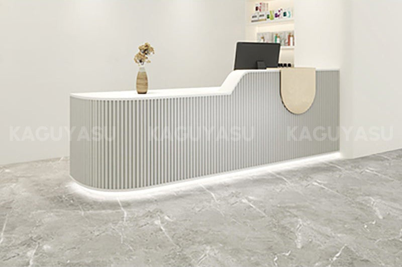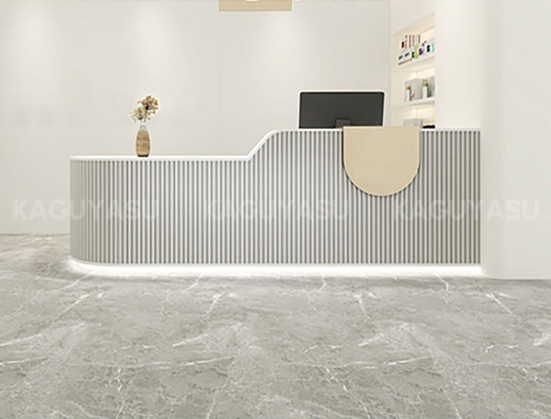 Striped Curved Reception Desk with Custom Logo and Multiple Drawers for Salons JDT-10102