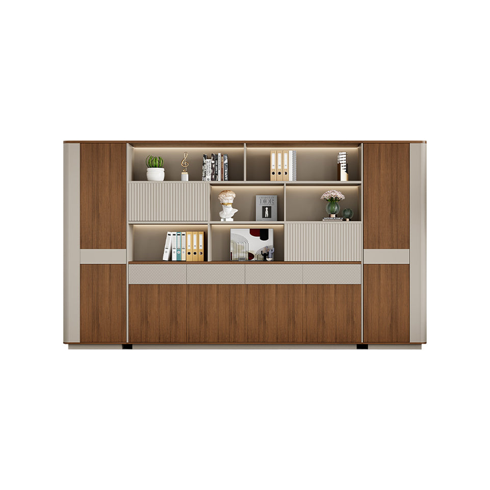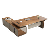 Designed for modern executives, this desk combines premium craftsmanship with practical features like a thickened desktop, dual-sided cable box, and ventilated CPU compartment. The curved island corners and ambient LED light strip add a refined touch, while the large storage space keeps your office organized and efficient