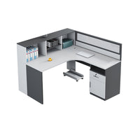 Crafted from E1-grade eco-friendly boards, this workstation features a thick desktop, built-in cable box, upgraded frosted aluminum screen panels, and front baffle design. Comes with a tall desktop cabinet for organized storage, making it ideal for busy office teams.