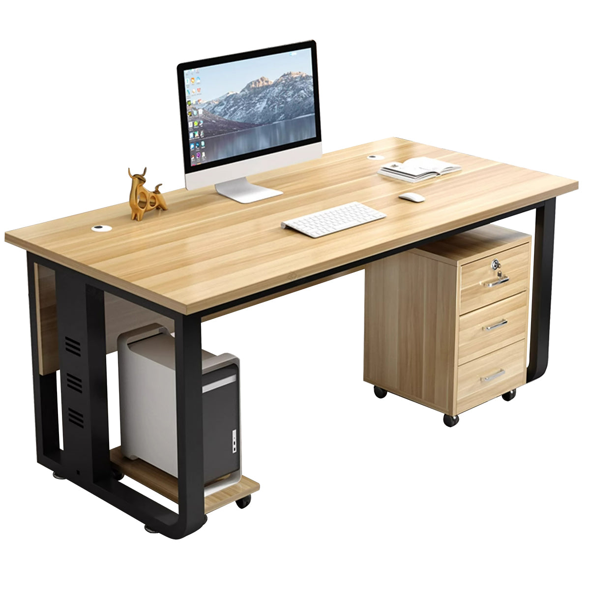 This sleek computer desk is ideal for home offices, workstations, or executive setups. It features a spacious, reinforced desktop, thick steel legs, a 3-drawer filing cabinet, enclosed storage, adjustable non-slip feet, and lockable swivel casters. Made from E1-grade eco-friendly panels with sealed edges, it’s heat-, scratch-, and wear-resistant. Includes a front privacy panel, cable management holes, and pre-installed outlet openings for a tidy, efficient workspace. Available in multiple colors and sizes.