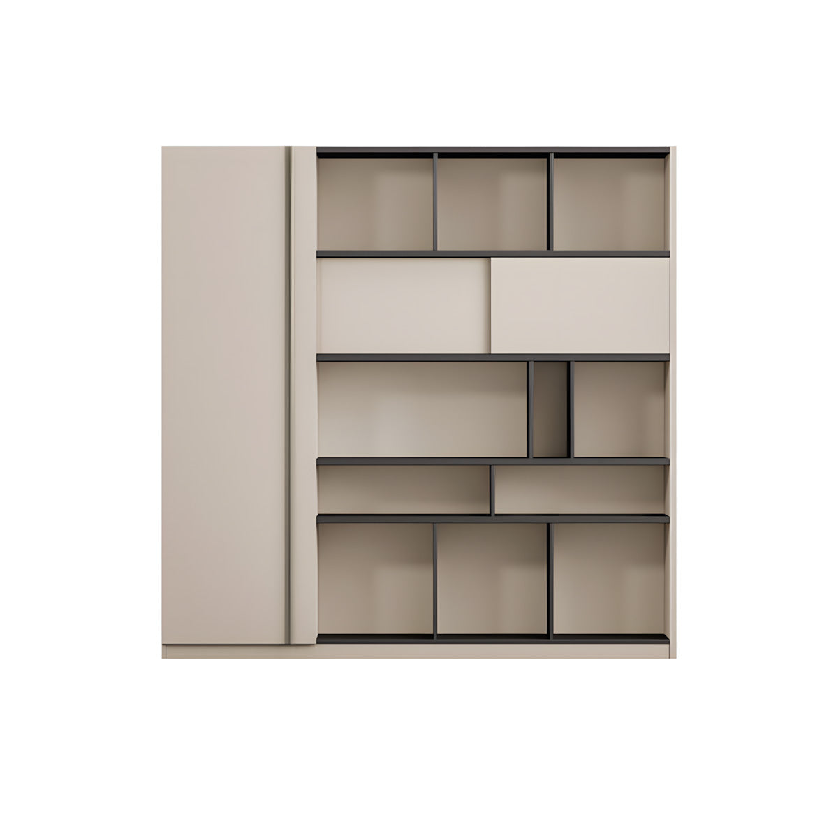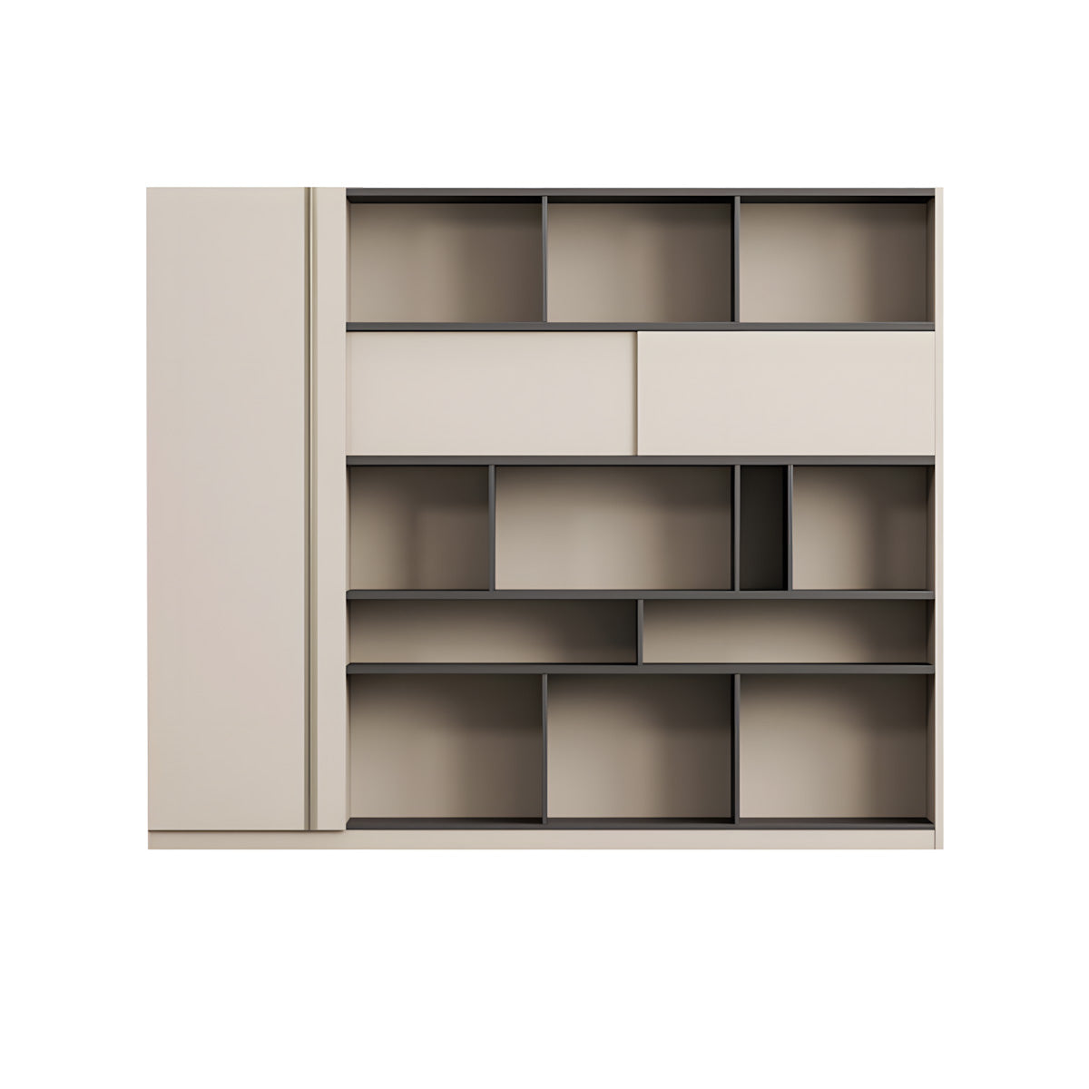 This storage cabinet storage cabinets with doors and shelves features a mix of open shelves and closed compartments, making it easy to organize and access daily essentials. This design enhances functionality while creating a tidy, structured, and visually appealing office environment.