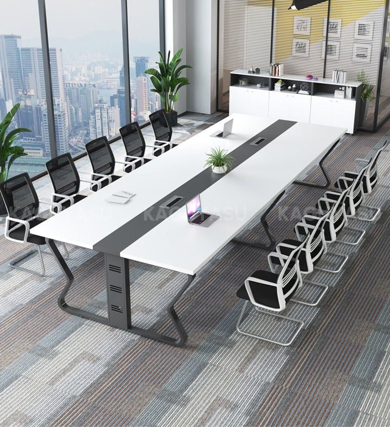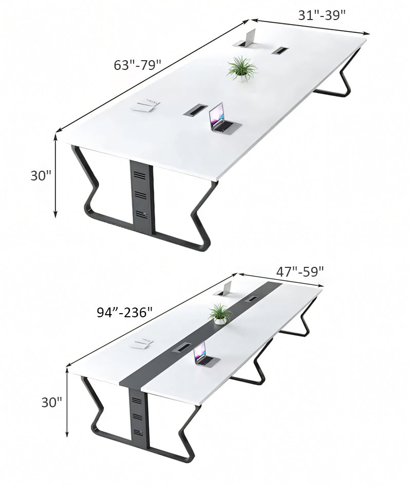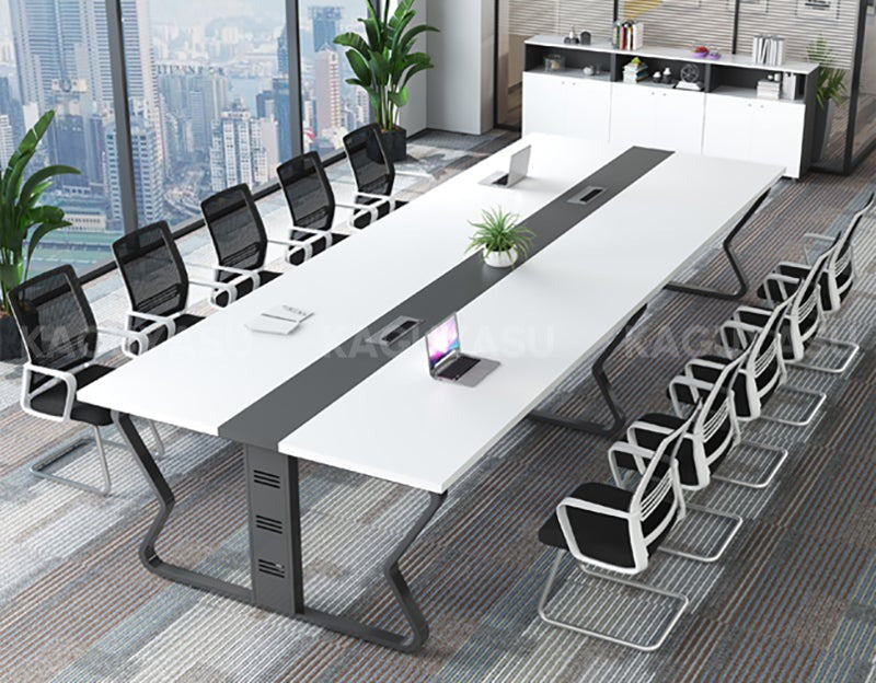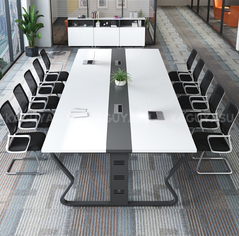 This long conference table features a thick, wide desktop with built-in cable management, crafted from E1 grade eco-friendly board. The upgraded painted steel frame ensures durability and stability, making it ideal for training sessions, office meetings, and reception areas