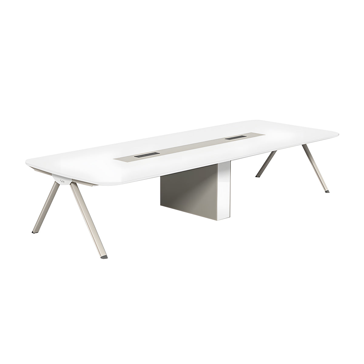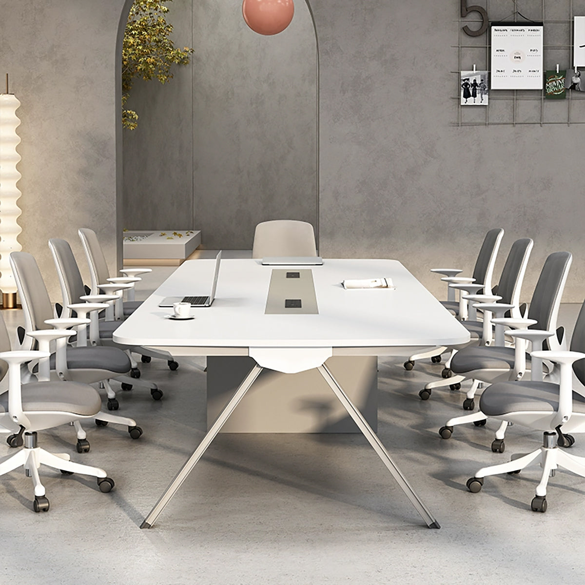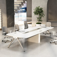 This modern rectangular conference table features a geometric design with rounded edges and sturdy carbon steel legs. Made from E1-grade eco-friendly materials, it offers durability and a safe, polished finish. Available in multiple sizes, it’s perfect for offices, meeting rooms, and training spaces, combining contemporary style with everyday functionality.