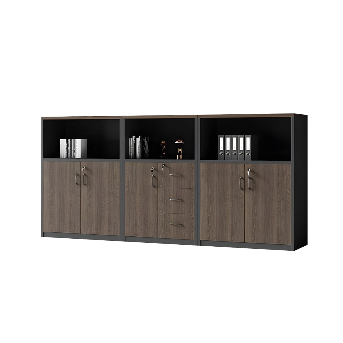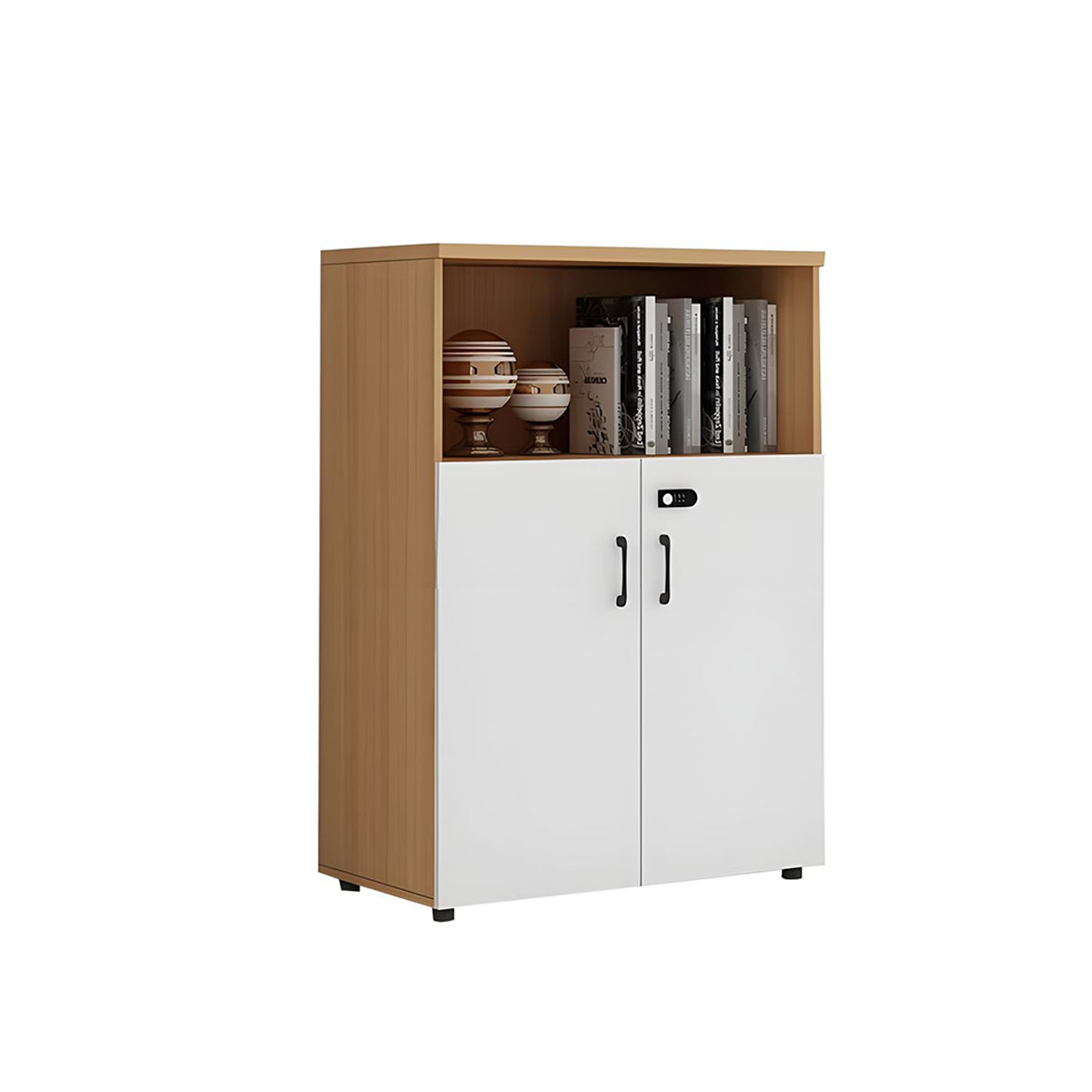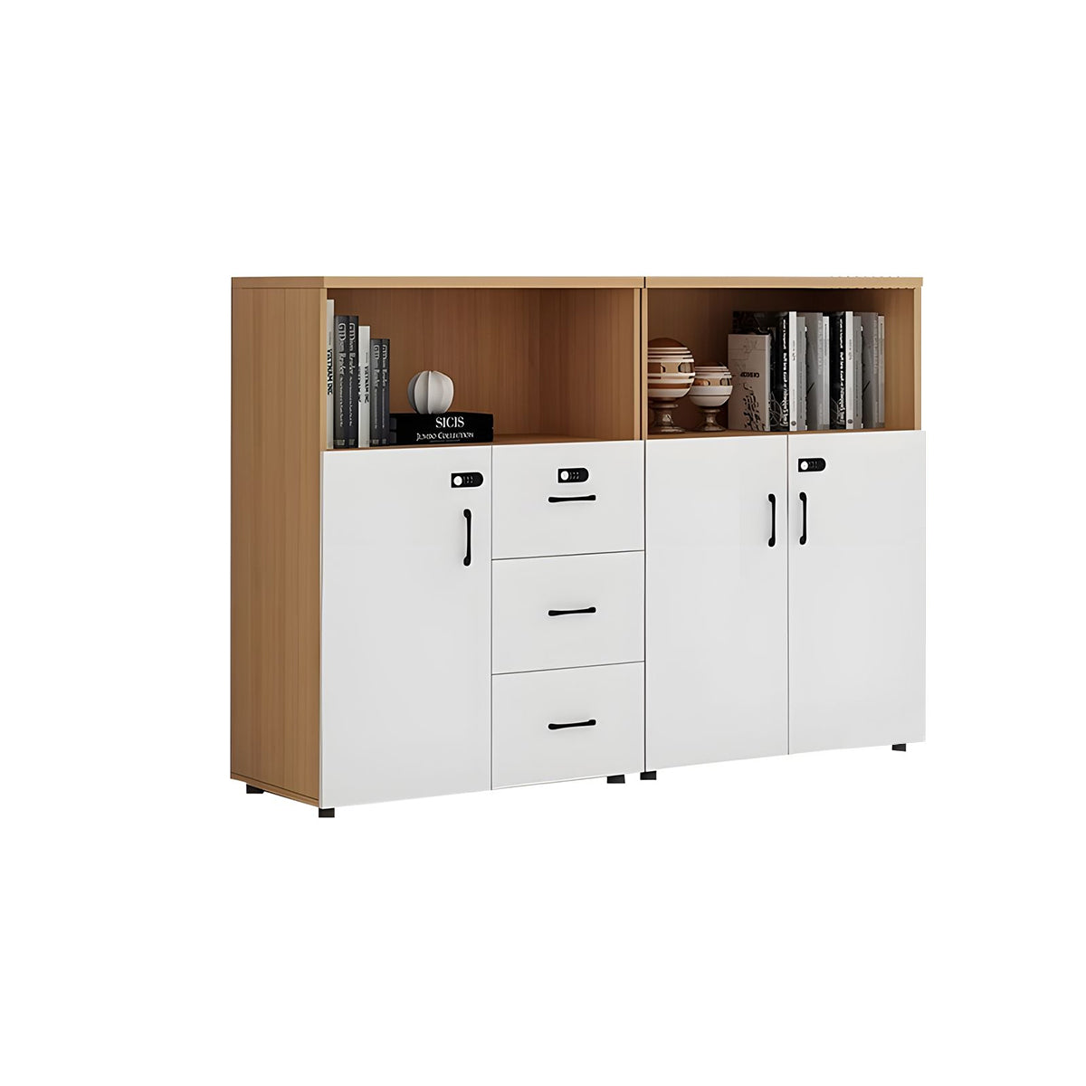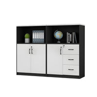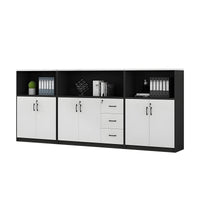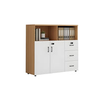 This versatile office cabinet combines solid eco-friendly wood panels with a spacious top surface for flexible storage. Open compartments and multi-section drawers provide organized, accessible storage, while a mechanical combination lock ensures security. Ideal for offices, meeting rooms, or as a partitioned storage solution.