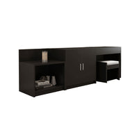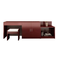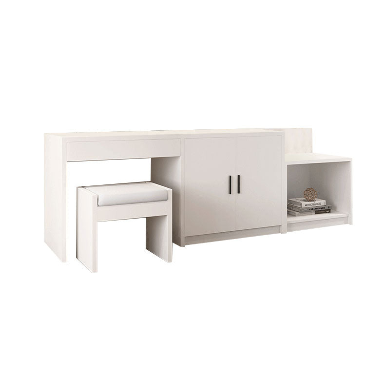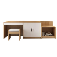 Built with eco-friendly engineered wood, this all-in-one desk set features a wide, thick tabletop, integrated luggage stand, and a dedicated vanity setup. Designed for hotels, apartments, and rental spaces, it offers both style and smart storage in one compact solution